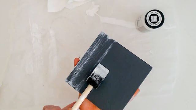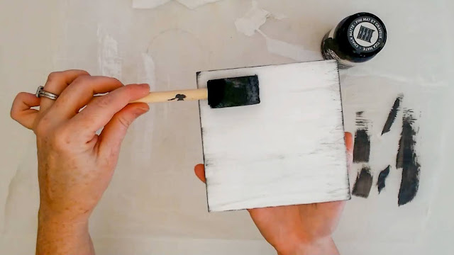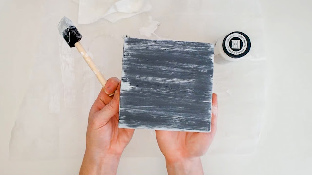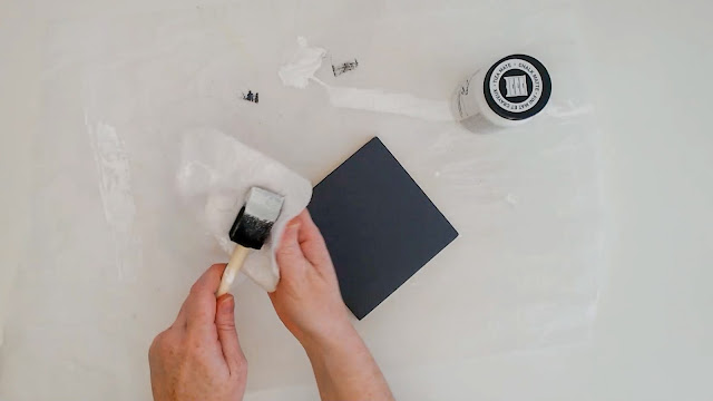 Next, dip your foam brush into the paint color opposite of your base color. This is your "distress" color. But, wipe off as much paint from the brush as you can. You want just a very small amount of paint on the foam brush.