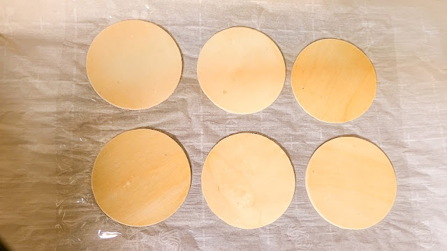 Place the wood slices on the warmed-up heat press, the place thermal laminating sheet over wood slices. The laminating sheet should extend beyond all the edges of the wood slices.