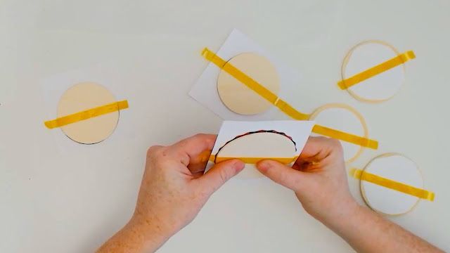 Apply the sublimation design face down over the laminated wood slices.