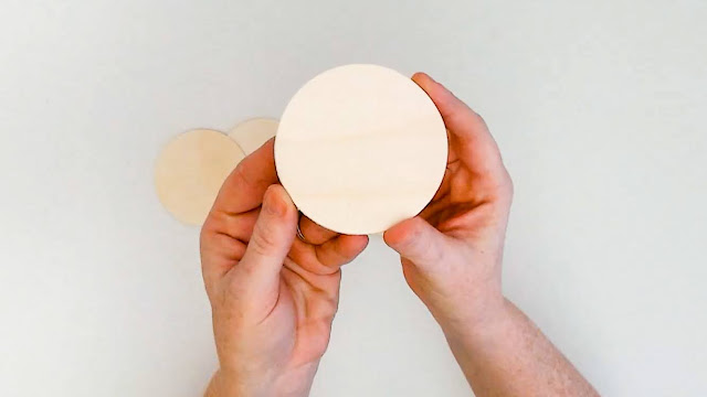 Small, thin wood slices are perfect for this project because they to fit into a heat press.