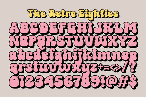 “The Retro Eighties” is a vibrant and playful typeface that captures the nostalgic essence of 1980s aesthetics. With its bold, rounded letterforms and whimsical charm, this font is perfect for projects that aim to evoke a happy, retro vibe.