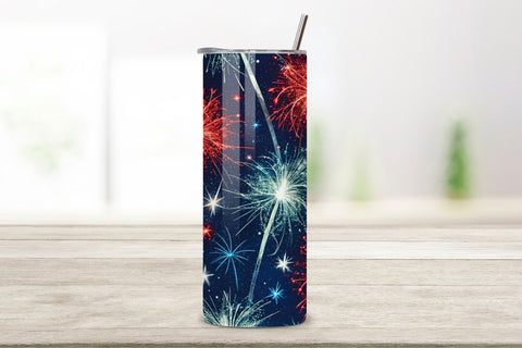 4th Of July Firework Trails Seamless Tumbler Wrap - 3D Sparkling Night Sky, 20oz Skinny Sublimation Design, American Flag Floral Art, Independence Day Tumbler Wrap, Fourth of July Floral Gift, USA Patriotic Flower Wrap