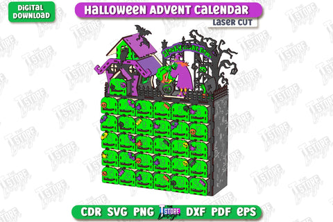 Halloween Advent Calendar Laser Cut | Gift Box | DIY | Holiday | Advent Box | CNC File