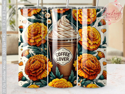 Coffee Lover Florals Tumbler wrap Sublimation PNG