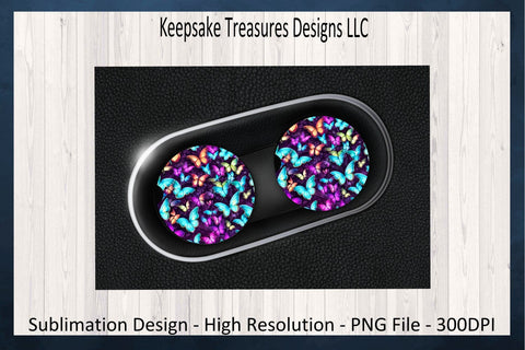 Spring Butterflies 20oz Straight Tumbler Wrap and Car Coaster Set, PNG Sublimation Design, Digital Download