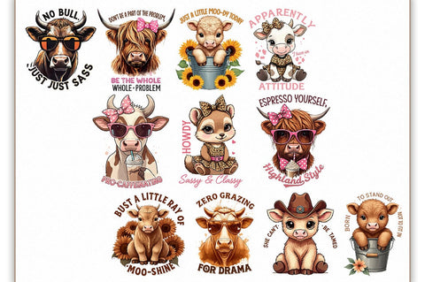 This is Retro Highland Cow Sublimation Bundle, 26 Designs Great for Funny Cow, Animals Designs❤️