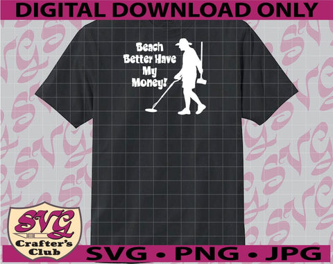 SVG, JPG and PNG file of Beach Better Have My Money Metal Detector Father's Day SVG Design. Great for using your Circuit or Silhouette cutting machines to cut HTV vinyl to make a stand out t-shirt design!
