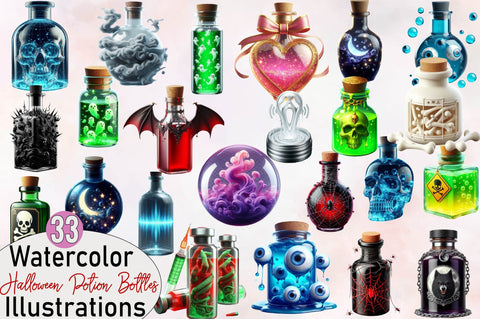 👉 Cute Halloween Potion Bottles Highland Clipart PNG File. 👉You will receive