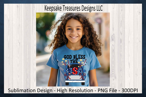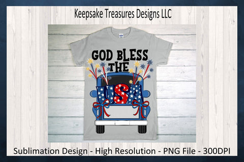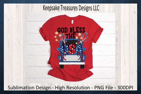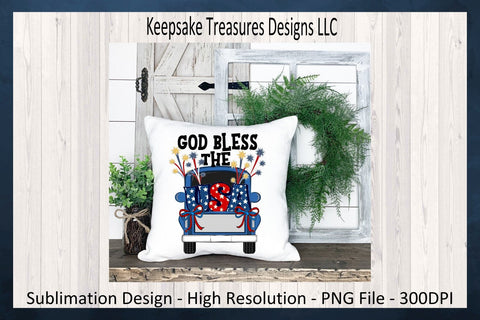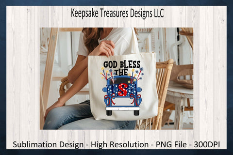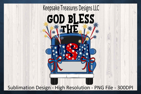 God Bless The USA, Blue Truck, Patriotic Design, Sublimation PNG, 4th Of July, Digital Download, PNG Printable