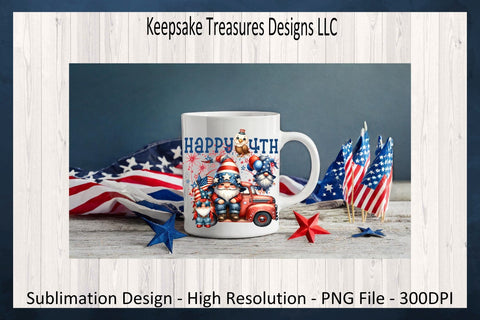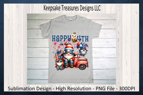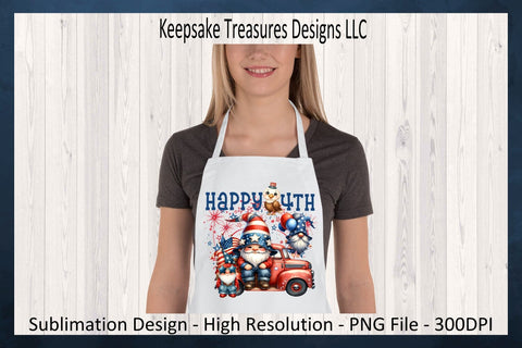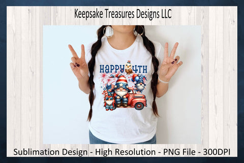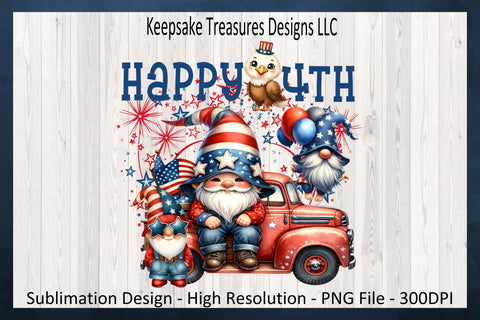 Happy 4th Patriotic Gnome Red Truck, Sublimation Png, Patriotic T-Shirt Design, Digital Download, Printable Png