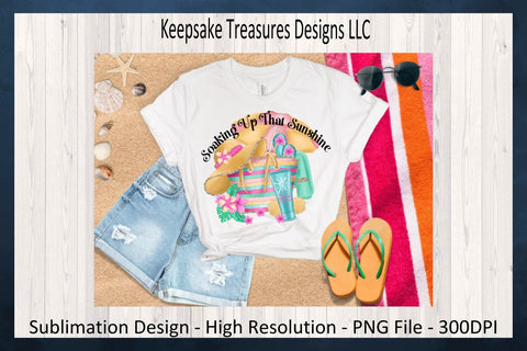 Soaking Up That Sunshine, Beach Theme, Summer T-Shirt Sublimation Png Design, Digital Download