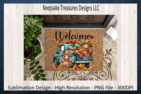Welcome Scarecrow Teal Farm Truck, Doormat Design, Sublimation Png, Digital Download, Printable Png