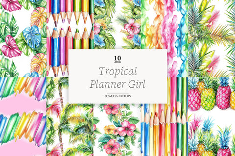 Bring paradise to your creative projects with these 10 high-quality seamless patterns! Perfect for summer planners, beach invitations, and tropical-themed designs.