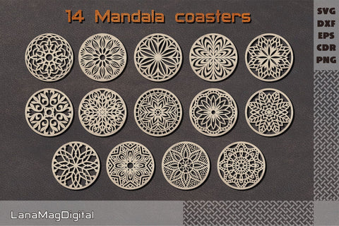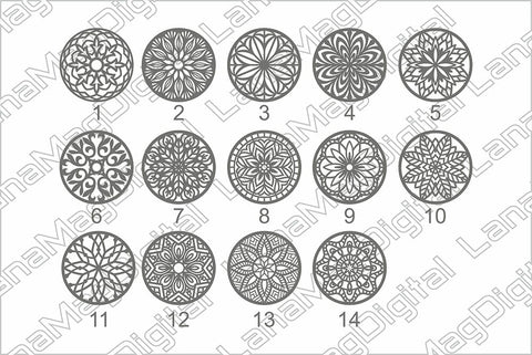 14 Round Mandala coasters svg, Mandala wall decor cut file, Laser cut files