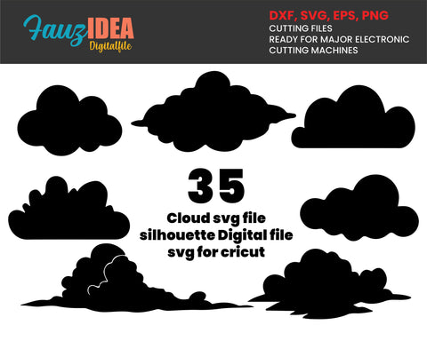 35 Cloud Svg, Cricut Cloud, Instant Download, Sky Svg, Summer Clipart, Weather Print, Cloud Design, Clouds silhouette, Cloud svg cut file