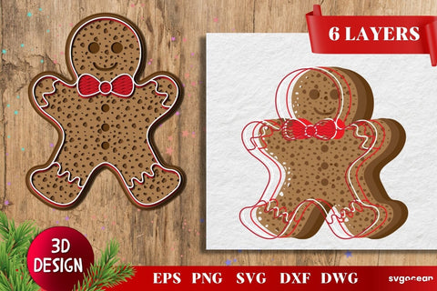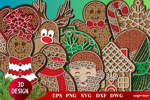 3D Christmas Gingerbread SVG Bundle | Layered | Zentangle