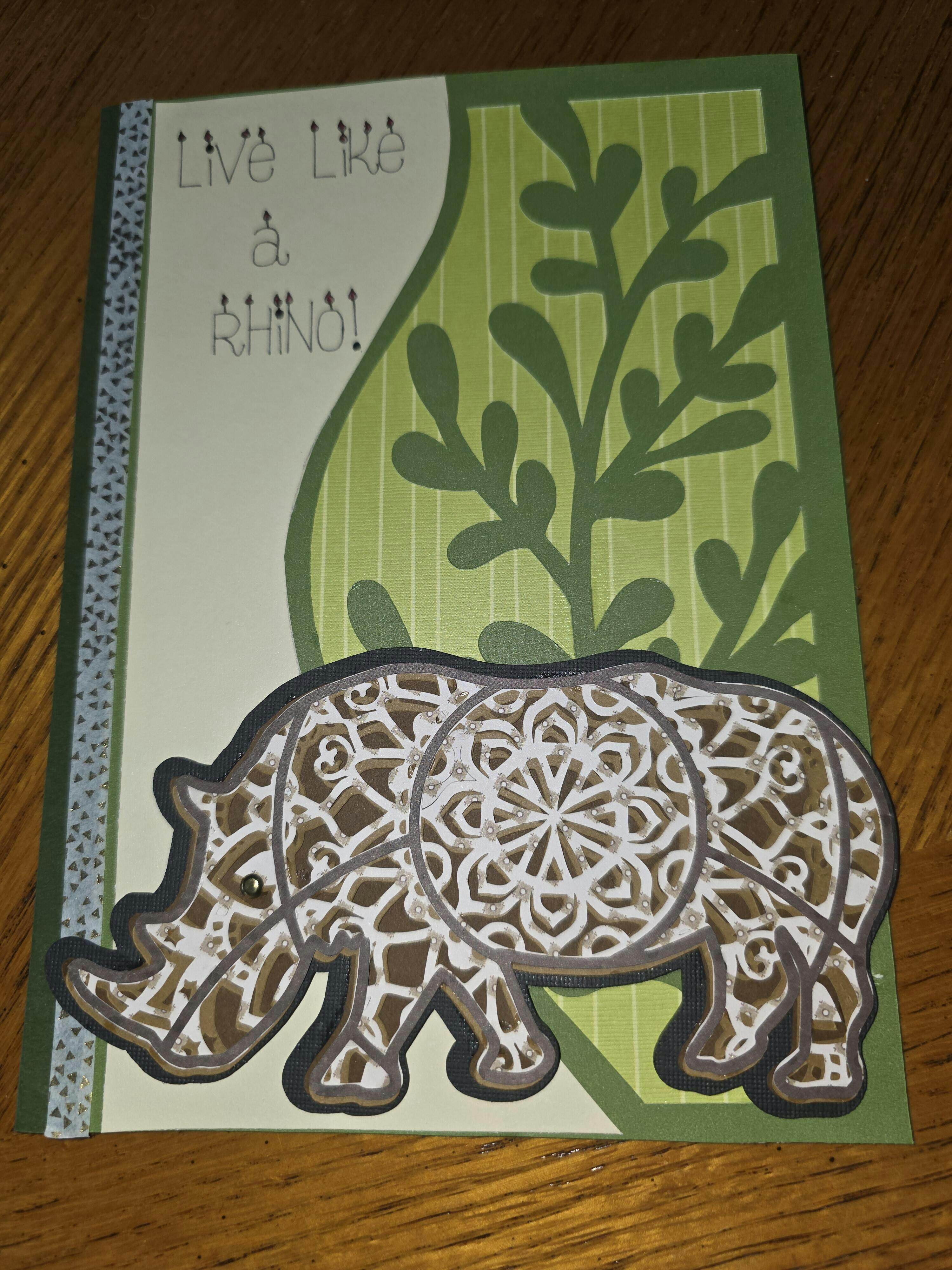 A layered rhinoceros mandala designed for cutting machines. This SVG has 4 cut layers including the background.