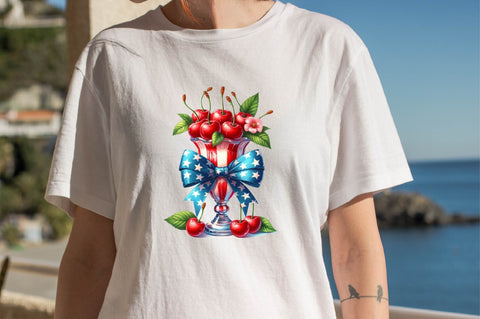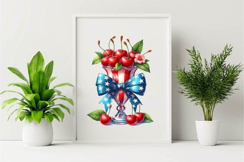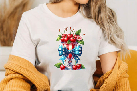 💌 4th of July Coquette Cherry Bow Sublimation Clipart