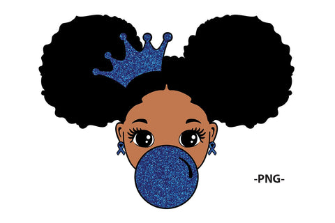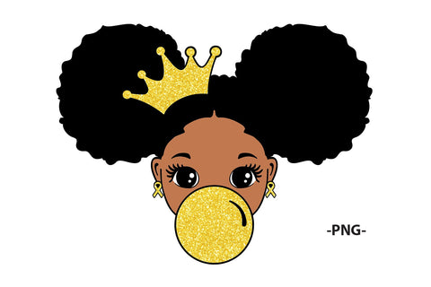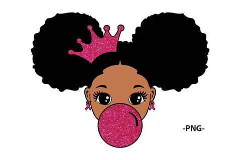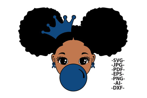 Afro Girl Bubble Gum SVG Crown Princess PNG EPS PDF DXF JPG AI Cute Black Girl Clipart for Cricut Silhouette Cutting Projects