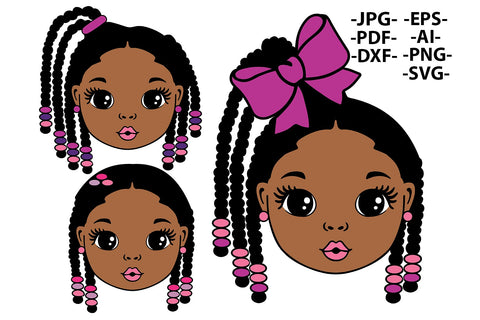 Afro Girl Bundle, 3 Black Girls Cliparts, Ribbon. Black Girl Bundle, Cornrow Hair Wig, Cute Lady, Peekaboo Svg, African Kids