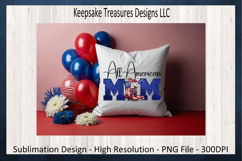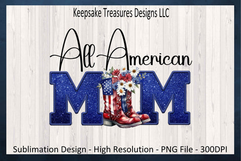 All American Mom Sublimation PNG, Blue Glitter & Embroidery Stitch, Patriotic Cowboy Boots, 4th Of July, Digital Download, PNG Printable