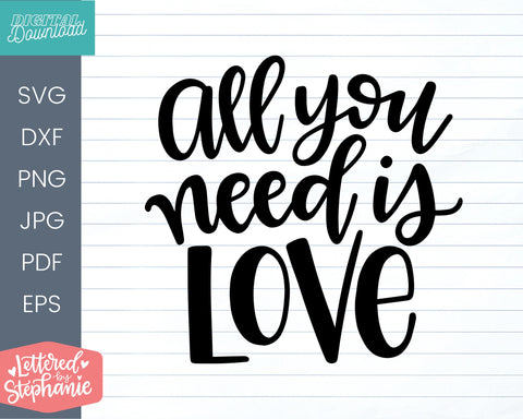 All you need is love svg, love cut file for valentines day, wedding or anniversary