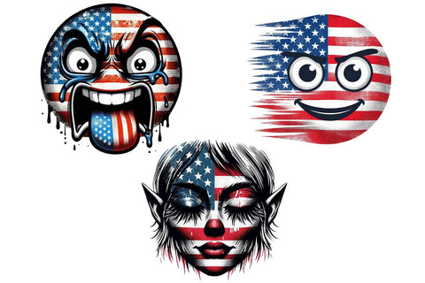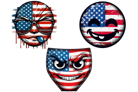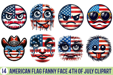 American Flag Fanny Face 4th Of July Clipart Bundle Printable File