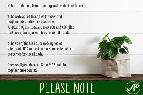 This digital download features three wall clock face templates. This design is saved in SVG Laser Cut Files for laser machines, CNC routers and other craft machines. in DXF, AI, filled and outline SVG format, PDF and CDR formats.