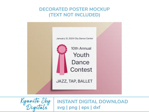Bundle of award ribbons with rosette on top, plus flat ribbons with and without holes. Make your own paper ribbons and rosettes. Layered for use with 1, 2, or 3 colors (shown with 2 colors). Can be customized with your own letters, numbers, or icons. Great for celebrating wins, decorating for competitions or after game victory parties, diy awards, making custom t-shirts, pillows, posters, embellishing photo enlargements or wall art, and more.