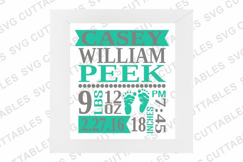 Baby Birth Announcement , Digital Cut file made specially for cutting machines.