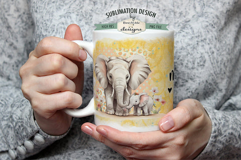 Delightful sublimation mug design adorned with a tender elephant and baby illustration, perfect for honoring the 'Best Mama Ever'.