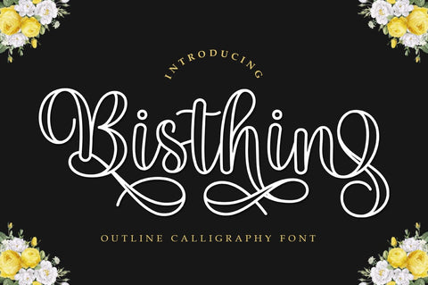 Bisthin is a beautiful Outline Calligraphy font with a touch of love. Bisthin is perfect for branding projects, home appliance design, product packaging, use in business cards, invitation cards, etc.
