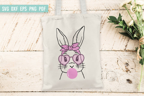 Bunny with bandana glasses bubble gum | Easter Bunny SVG