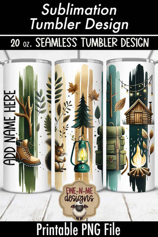 Camping Brushstrokes Backpack - 20 oz Seamless Tumbler