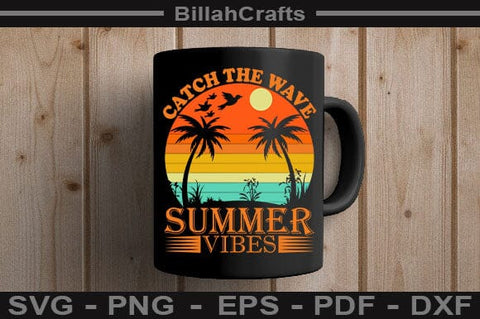 Catch the Wave Summer Vibes SVG Retro Beach Sunset Clipart