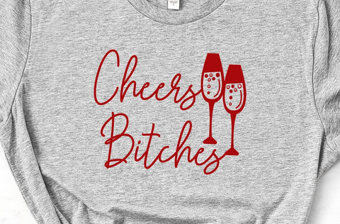 Cheers Bitches! This witty adult drinking uncensored svg design features a few glasses of bubbly and an ode to your drinking buddies. Perfect for a bachelorette party or girls weekend. Use this commercial free svg to create shirts, hats, tumblers, mugs, stickers and more. Compatible with Cricut, Silhouette, ScanNCut, and other die cutting machines that read these Cut File Formats: SVG | PNG | DXF