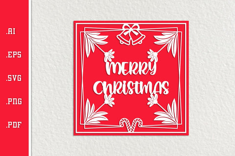 Merry Christmas Card Paper Cut SVG EPS AI PNG PDF