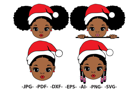 Christmas Designs Svg, Christmas Bundle Svg, 16 Christmas Cliparts, Black Girl Christmas Svg, Christmas Girl Svg, Black Girl Svg, Litle Cute Girl Svg, Peekaboo Girl Svg, Svg Cut Files