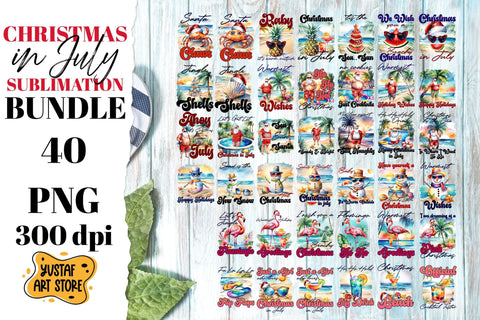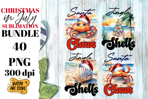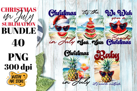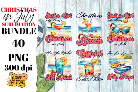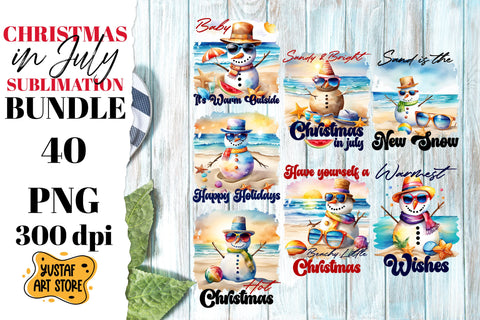 Christmas in July sublimation bundle. Summer party AI illustration watercolor design.