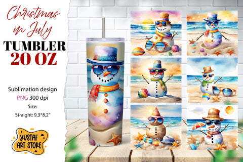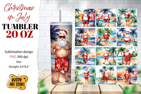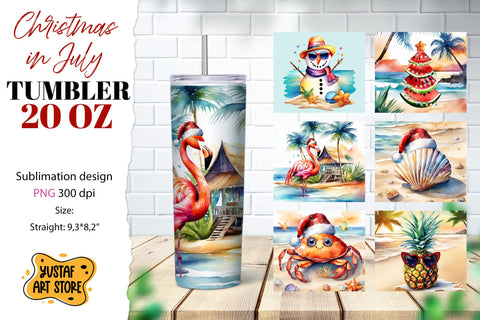 Christmas in July tumbler 20 oz sublimation. Summer party AI illustration watercolor design.