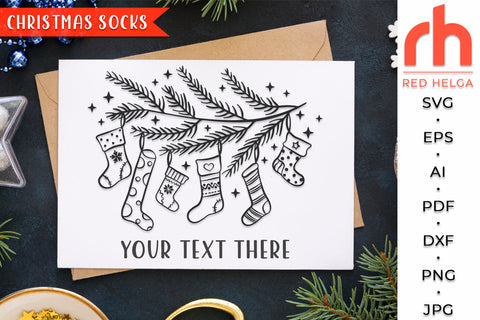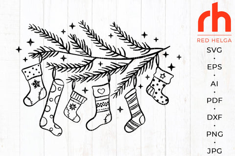 Christmas socks svg - Pine branch cut file - Xmas stockings svg - Hanging socks svg - Christmas decor svg - Glowforge cut file, Silhouette cut file, Cricut cut file - Png, Jpg, Dxf, Eps