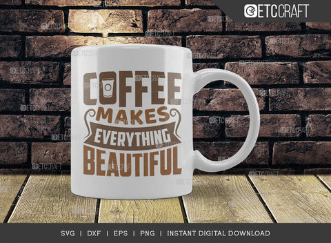 Coffee Makes Everything Beautiful SVG Cut File, Coffee Svg, Coffee Party Svg, Coffee Life, Coffee Quotes, ETC T00555
