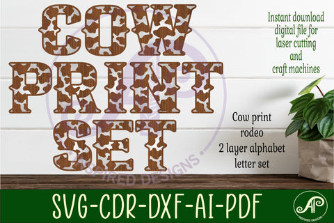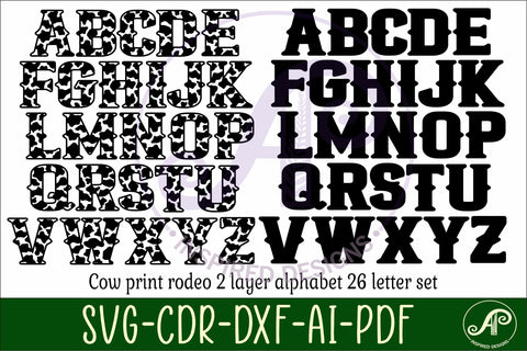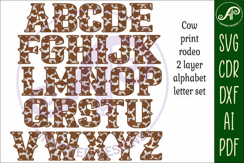 This digital download features 1 zip folder including 26 cow print alphabet letters. These letters work well as two layers (solid backing and detailed top) or just as a single layer.