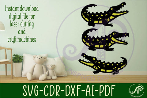 This digital download features 2 two layer Cute crocodile cut outs. these are SVG Laser Cut Files for laser machines, CNC routers, Circuit and other craft machines. in DXF, AI, CDR formats too.