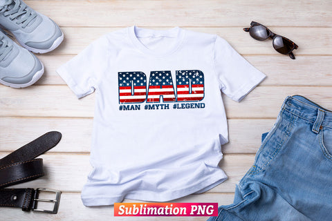 Dad Man Myth Legend USA Flag 4th of July Fathers Day Vector T-shirt Design in Sublimation Png Printable Files.