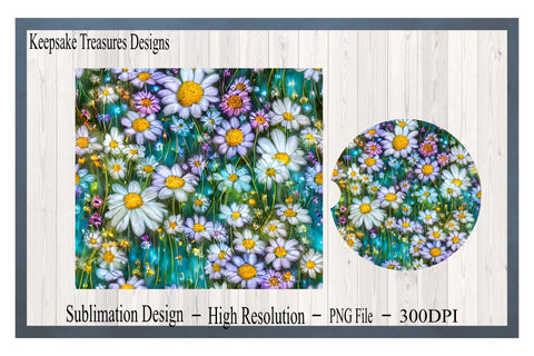 Daisies and Wildflowers 20oz Straight Tumbler Wrap, and Car Coaster, PNG for Sublimation, Digital Download, Spring Tumbler Wrap