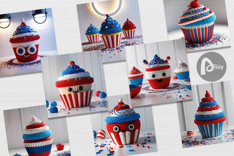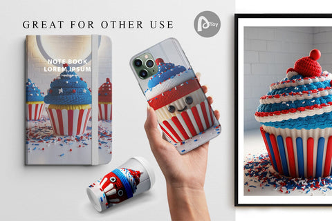 Digital Paper Patriotic Cupcake Crochet
