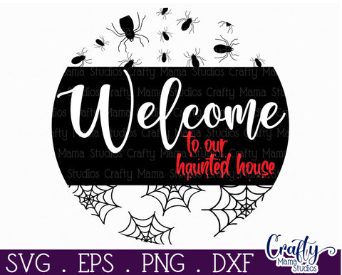 Farmhouse Halloween Round Sign, Welcome To Our Haunted Home