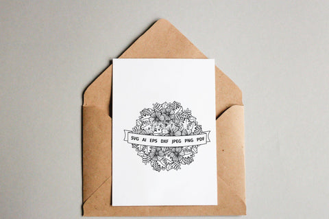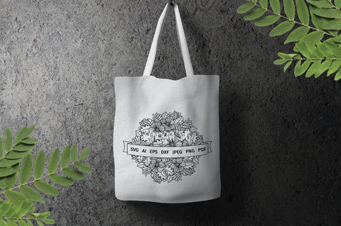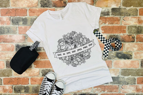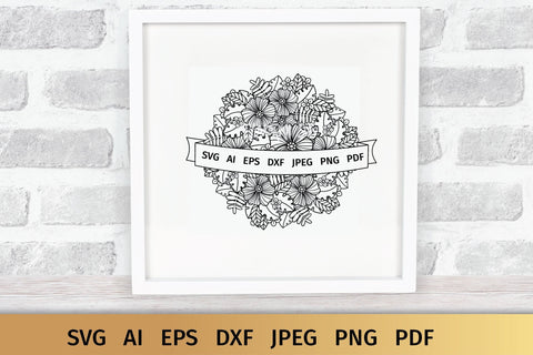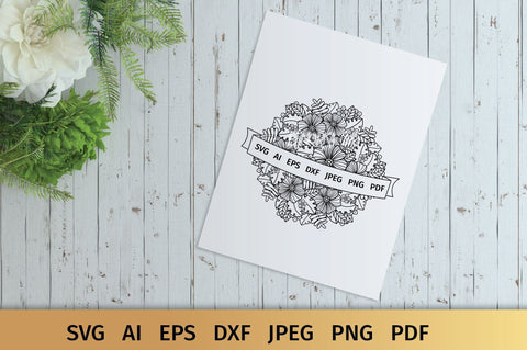 Ribbon Banner SVG, Floral Banner SVG, Bouquet SVG, Flowers Mandala SVG.
