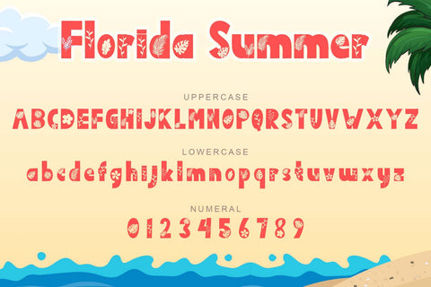 "Florida Summer" is a unique and playful display font. This font is equipped with uppercase, lowercase, numerals, punctuations and multilingual support. It is very suitable for use in summer, camping, holiday, vacation, spring, banner, poster, print, branding, logo, sticker and others.